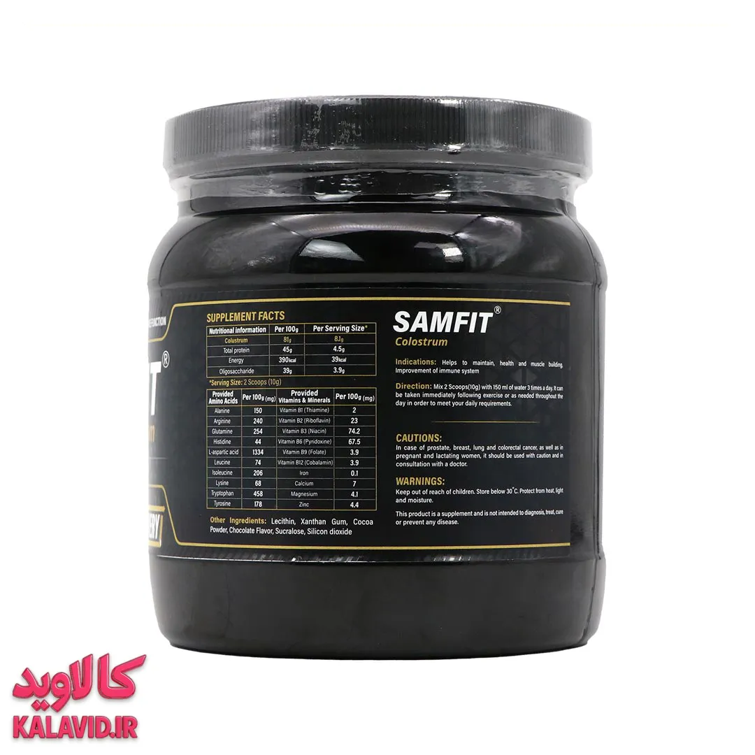 پودر خوراکی کلستروم با طعم شکلات 450 گرم ـ سام فیت 12236 - نمای پشت محصول - فروشگاه مکمل بدنسازی کالاوید