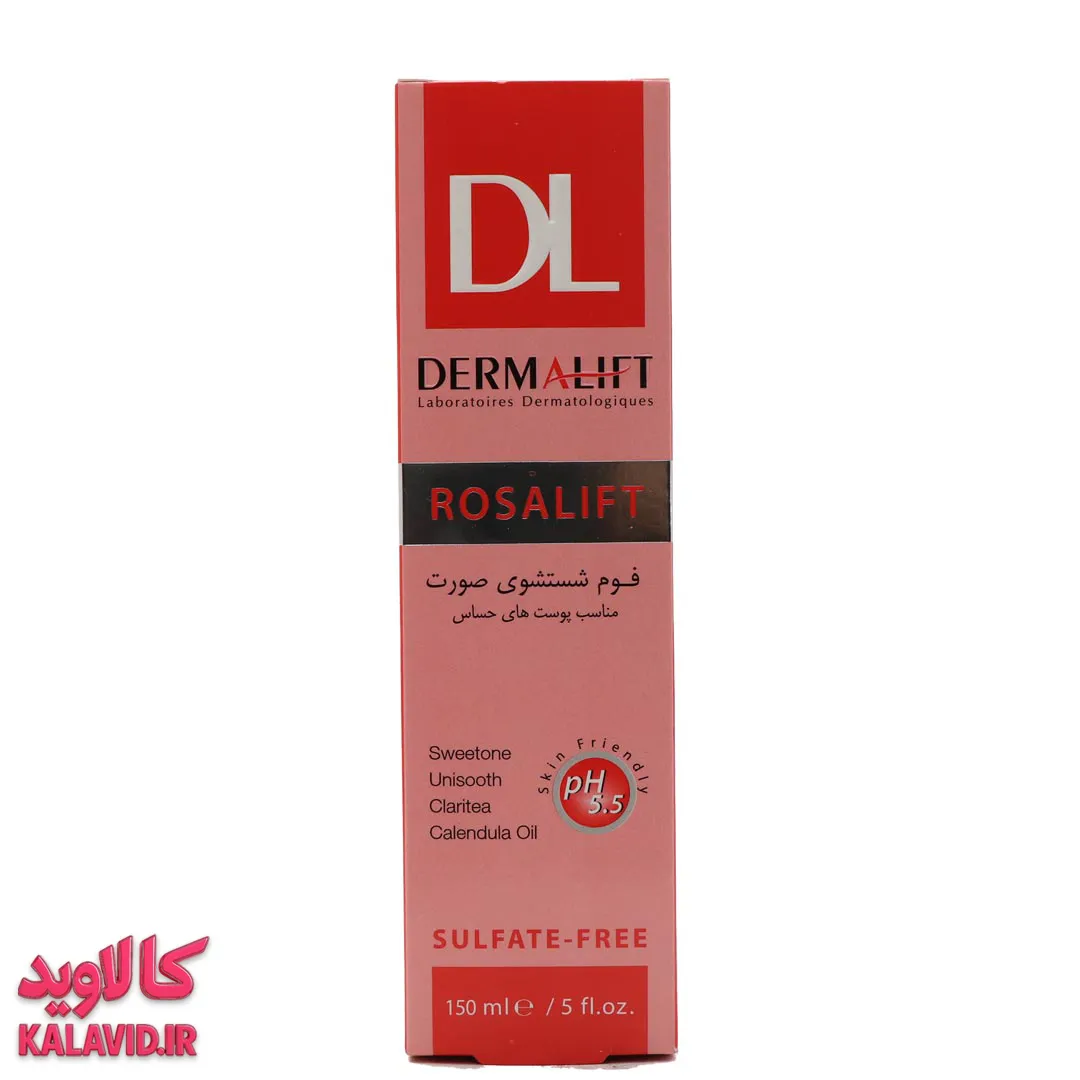 فوم شستشوی پوست حساس رزالیفت درمالیفت (Dermalift Rosalift Cleansing Foam for Sensitive Skin) با حجم ۱۵۰ میلیلیتر، یک پاککننده فوقالعاده ملایم است که به طور خاص برای نیازهای پوستهای حساس، مستعد قرمزی و دارای رزاسه طراحی شده است. این محصول با pH متعادل و پاککننده فاقد مواد صابونی، عطر و پارابن، به آرامی آلودگیها، ناخالصیها و باقیمانده آرایش را بدون ایجاد تحریک یا از بین بردن چربیهای مفید پوست، پاک میکند.