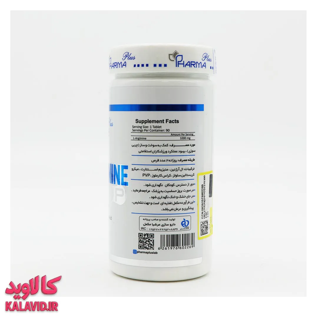 قرص ال آرژینین 1000 میلی گرم فارما پلاس 90 عددی 3895 - نمای جانبی محصول - فروشگاه مکمل بدنسازی کالاوید