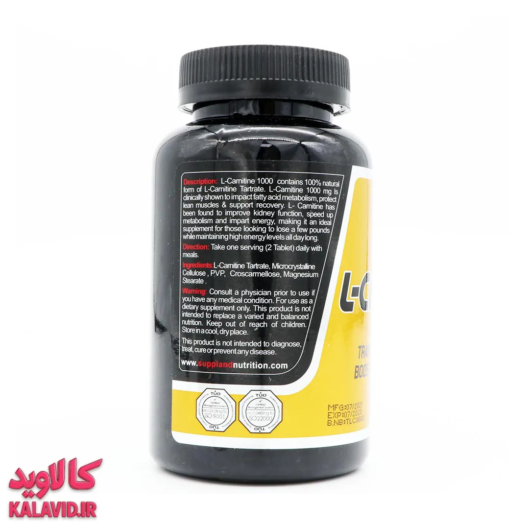 قرص ال کارنیتین 1000 میلی گرم ساپلند نوتریشن 90 عددی 3863 - نمای جانبی محصول - فروشگاه مکمل بدنسازی کالاوید