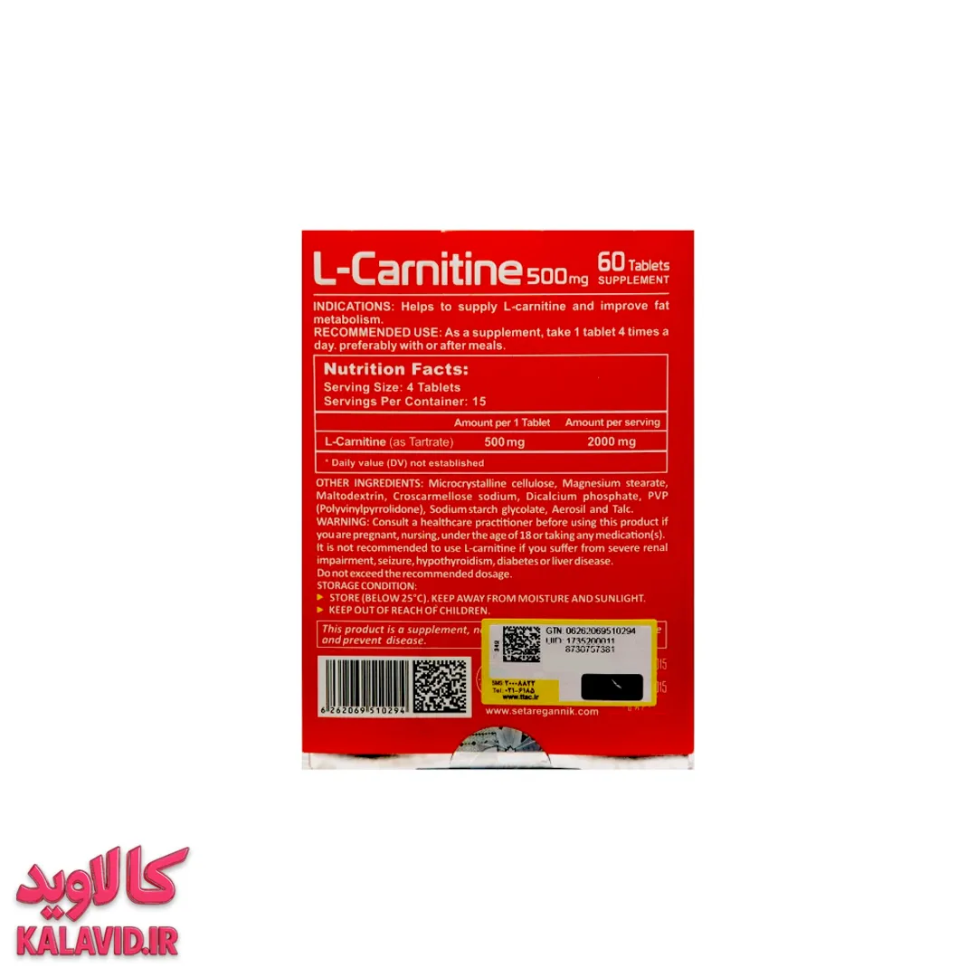قرص ال کارنیتین 500 میلی‌گرم 60 عددی ویتاپی ستارگان نیک